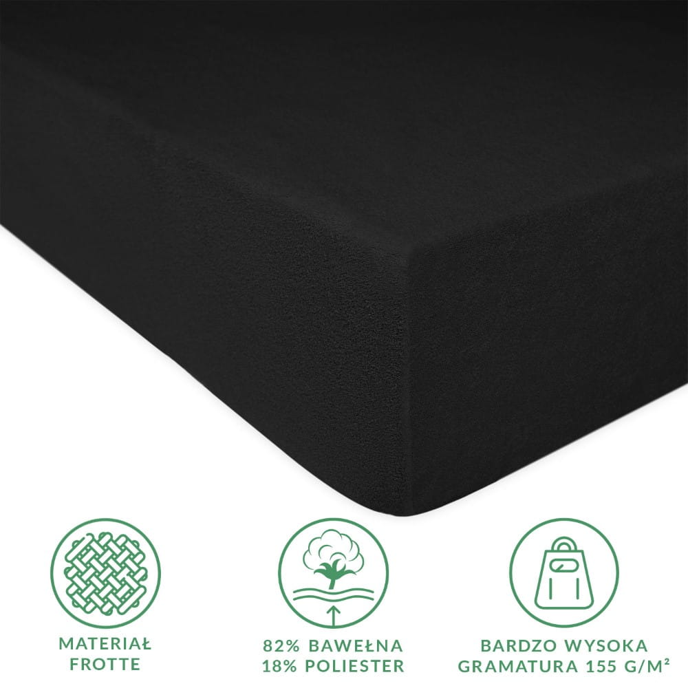 Klasyczne wygodne gładkie czarne prześcieradło frotte 120x200 cm z gumką