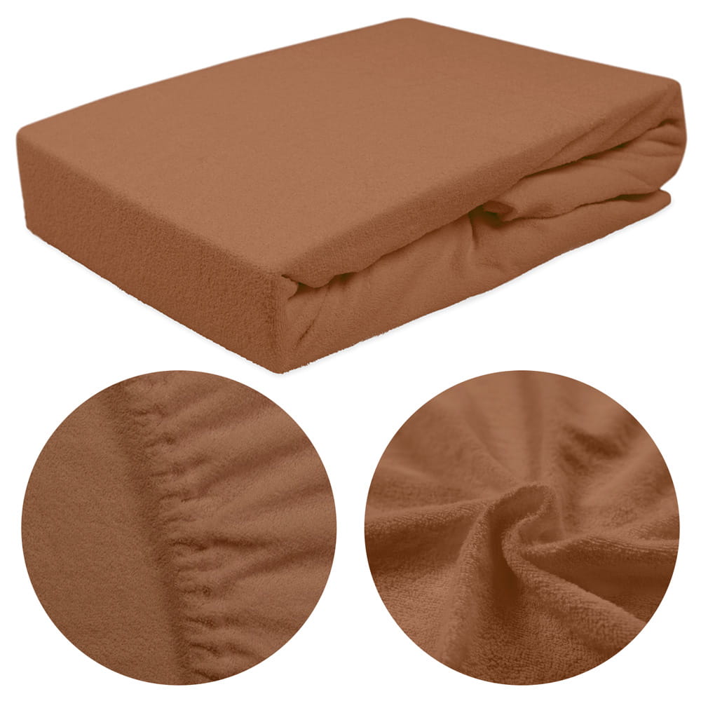 Klasyczne wygodne gładkie brązowe prześcieradło frotte 120x200 cm z gumką