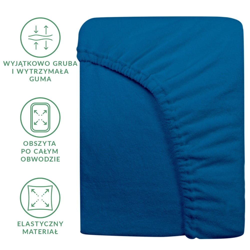 Klasyczne wygodne gładkie niebieskie prześcieradło frotte 140x200 cm z gumką
