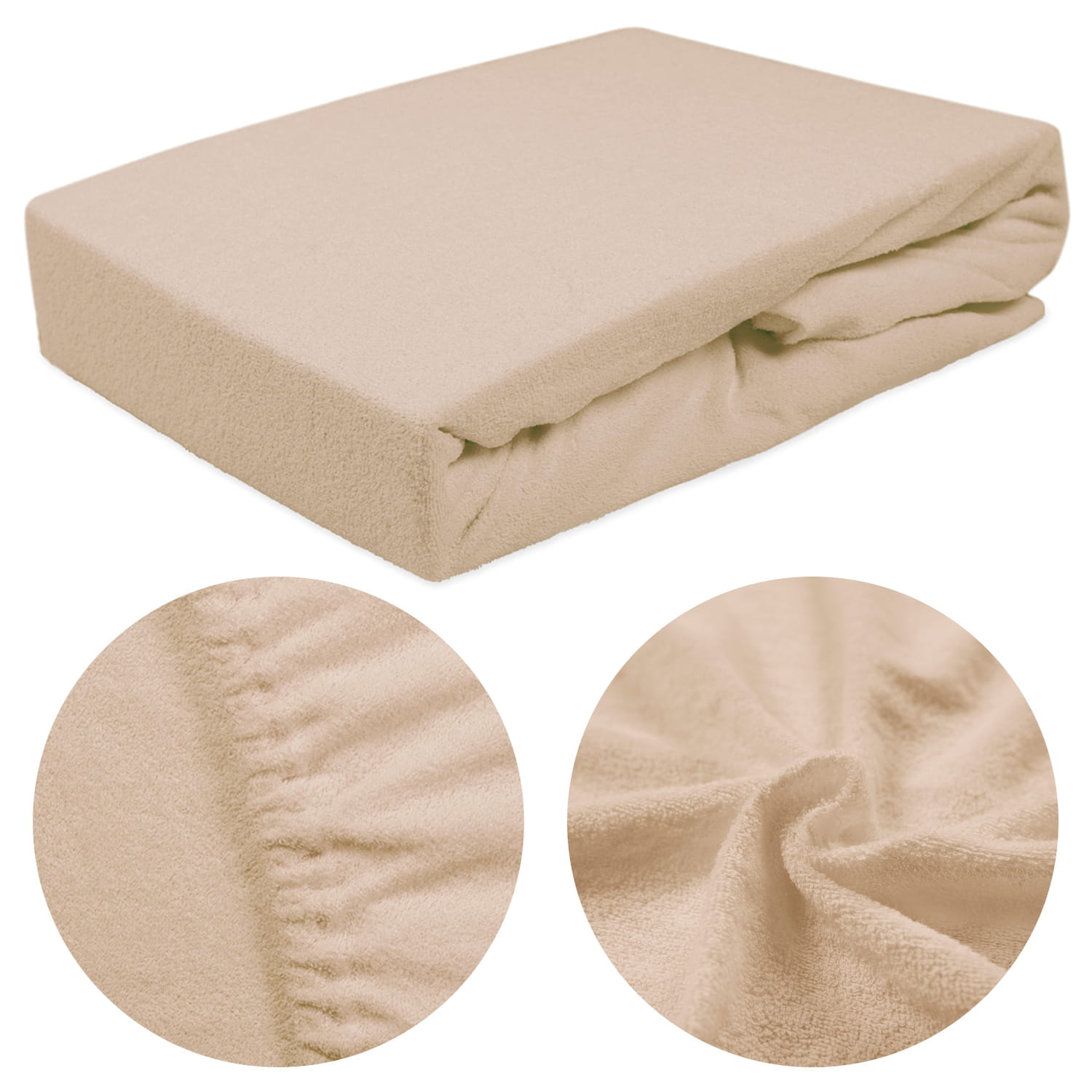 Klasyczne wygodne gładkie beżowe prześcieradło frotte 180x200 cm z gumką jednobarwne