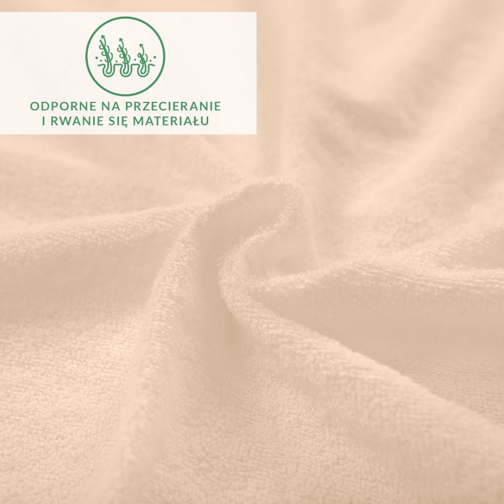 Prześcieradło z dzianiny frotte w kolorze perłowego różu nie mechaci się, jest odporne na przecieranie i rwanie się materiału. Nie wymaga także prasowania i nie gniecie się.