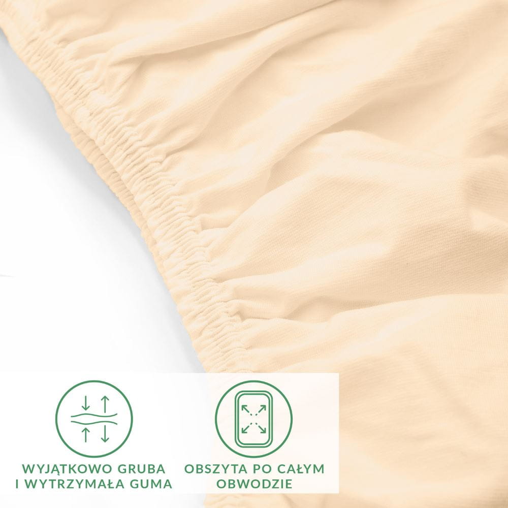 Eleganckie bardzo wytrzymałe ekskluzywne beżowe prześcieradło jersey 180x200 cm z elastanem z gumką