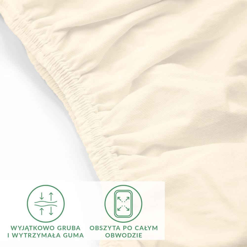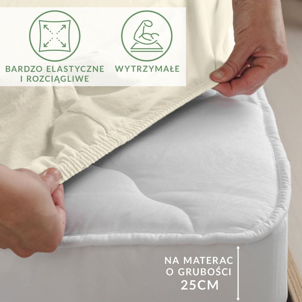 Eleganckie ekskluzywne bardzo wytrzymałe kremowe prześcieradło jersey 200x220 cm z elastanem z gumką