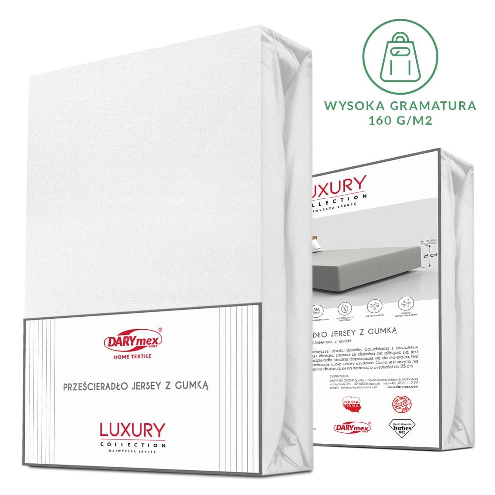 Eleganckie bardzo wytrzymałe ekskluzywne białe prześcieradło jersey 90x200 cm z elastanem z gumką