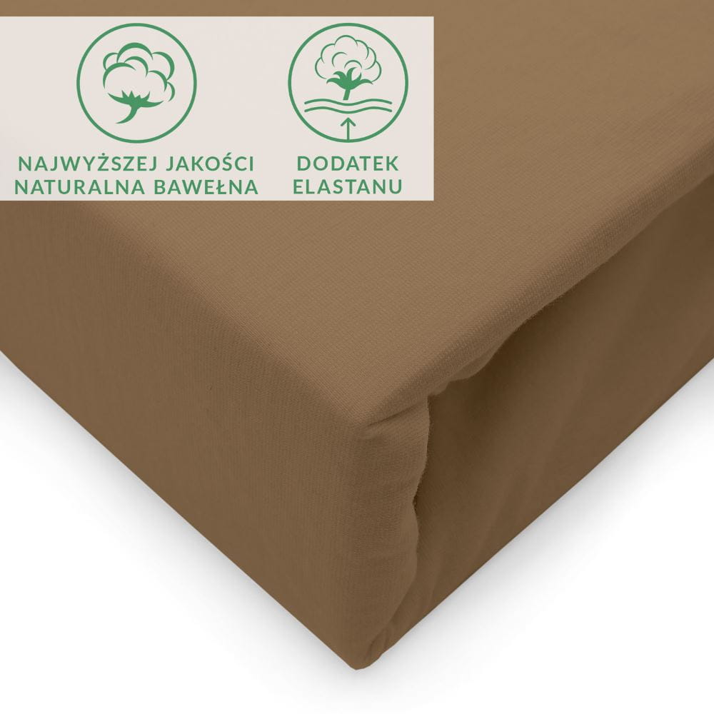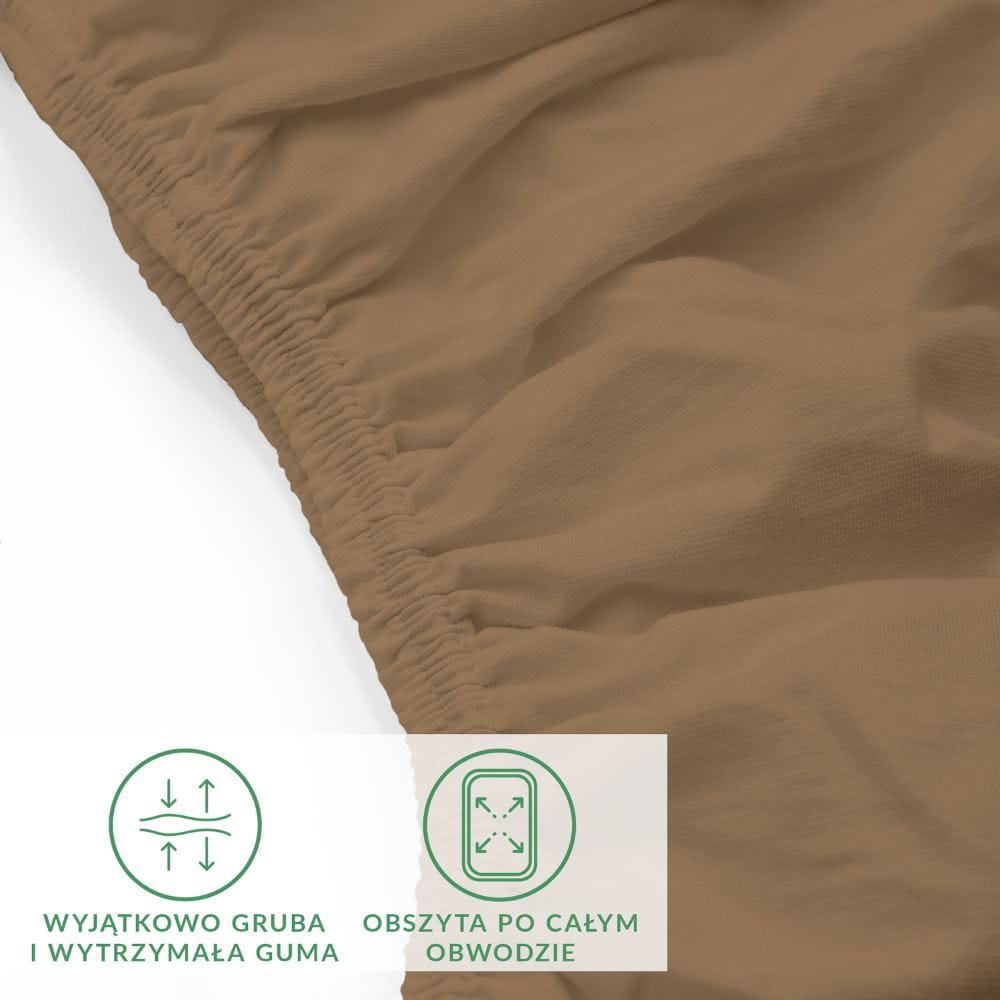 Eleganckie bardzo wytrzymałe ekskluzywne brązowe prześcieradło jersey 90x200 cm z elastanem z gumką