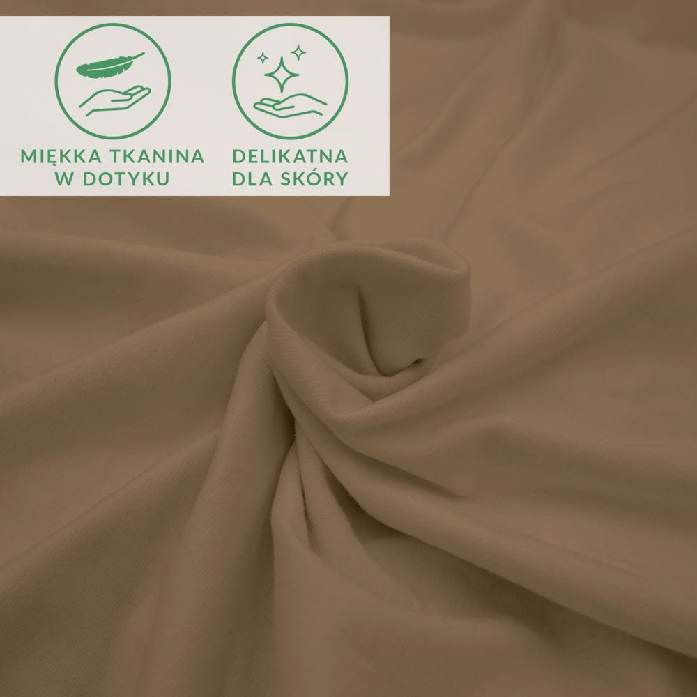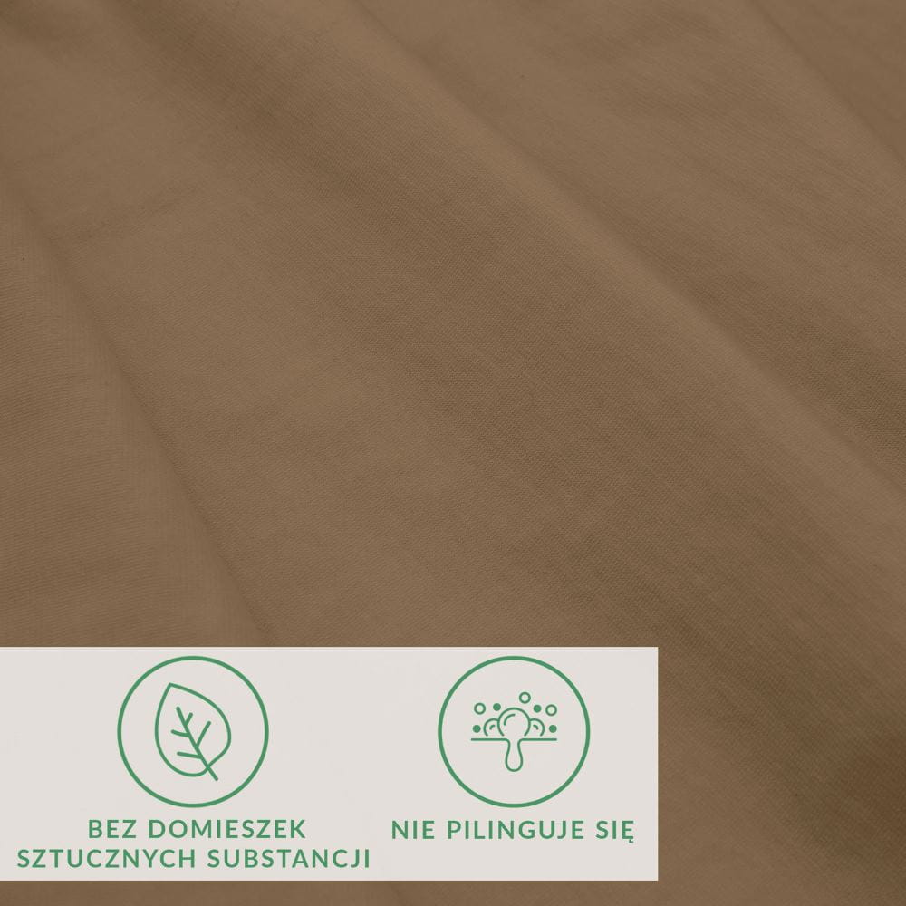 Tkanina prześcieradła w kolorze brązowym nie pilinguje się, co zapewnia nam spokojny sen. Nie wymaga prasowania, dzięki czemu od razu po wysuszeniu prześcieradło możemy założyć na łóżko, a wszystkie zagniecenia znikają. Materiał jest wyjątkowo miękki i elastyczny.