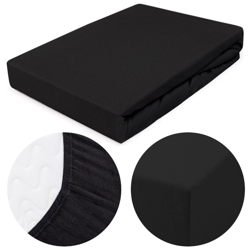 Wytrzymałe delikatne miękkie czarne prześcieradło jersey 160x200 cm z gumką