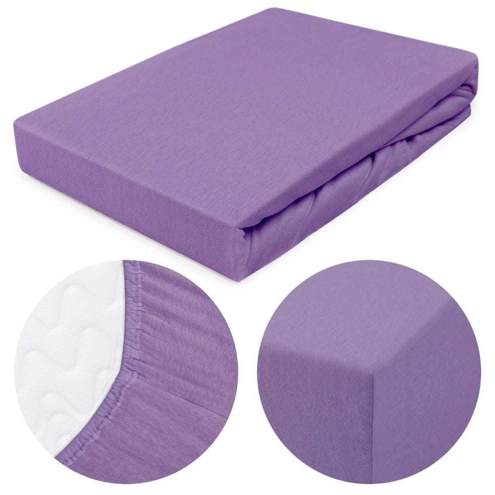 Wytrzymałe delikatne miękkie jasnofioletowe prześcieradło jersey 160x200 cm z gumką