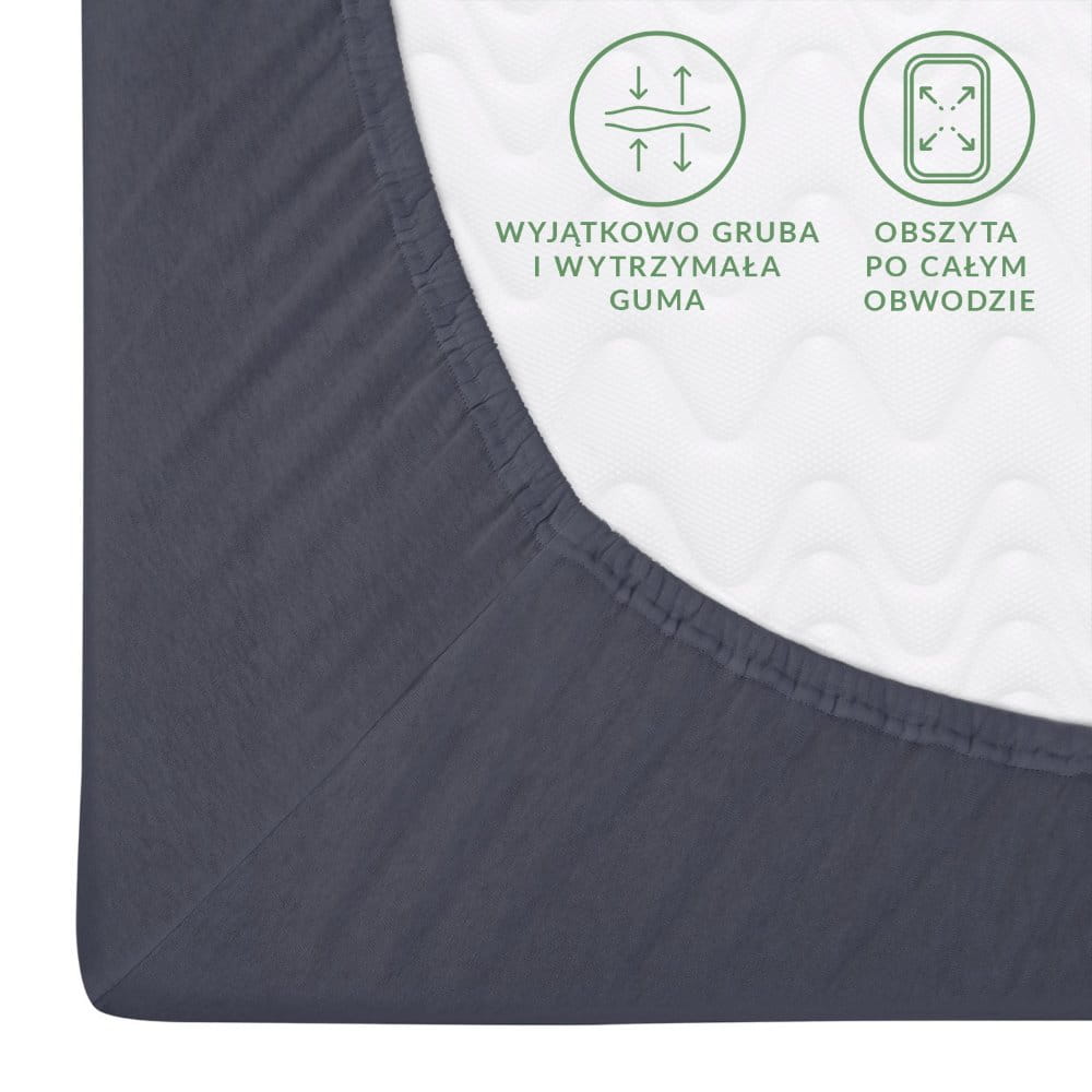 Wybierz prześcieradło jersey premium w kolorze ciemno szarym, aby cieszyć się nie tylko luksusowym wyglądem swojej sypialni, ale także wyjątkowym komfortem każdej nocy. Idealne połączenie elegancji, funkcjonalności i dbałości o szczegóły.