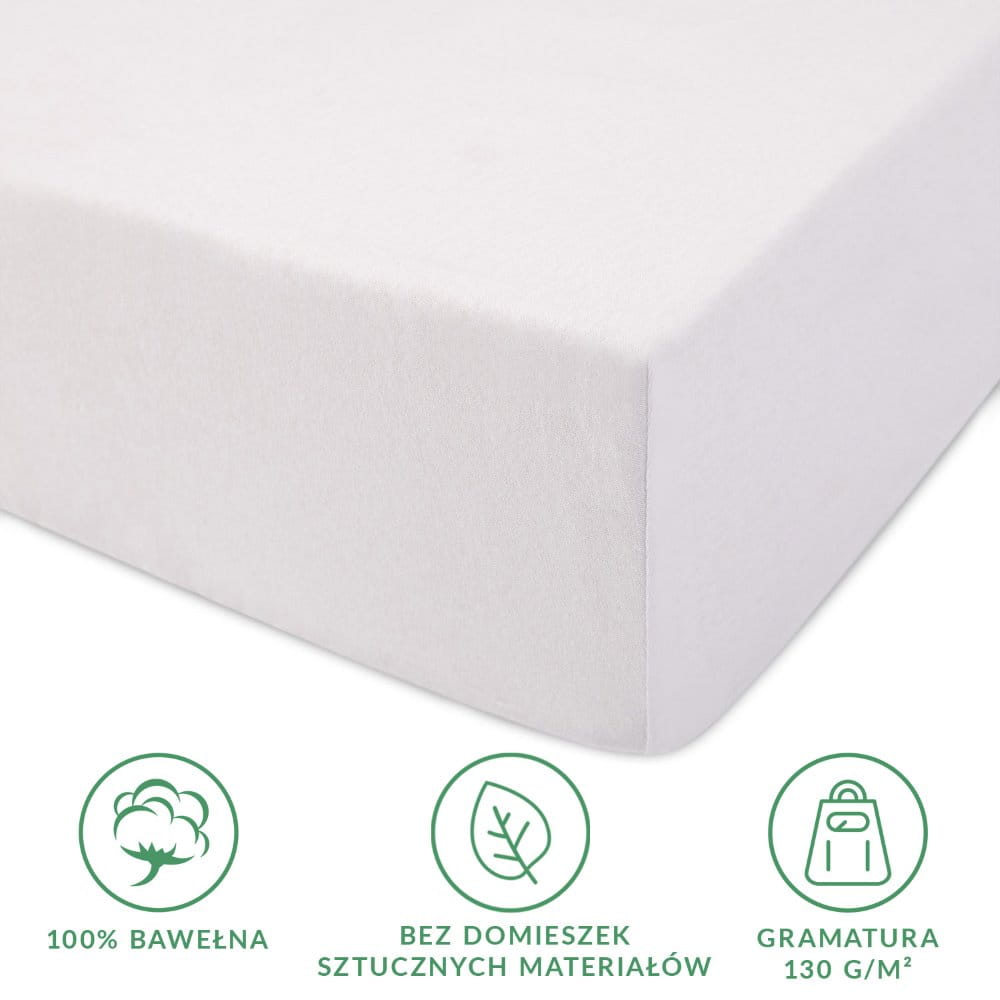 Miękkie delikatne wytrzymałe białe prześcieradło jersey 180x200 cm z gumką