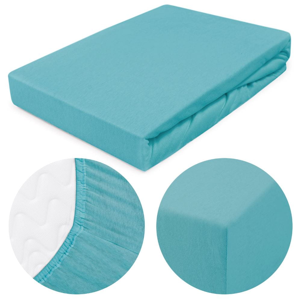 Miękkie delikatne wytrzymałe turkusowe prześcieradło jersey 180x200 cm z gumką