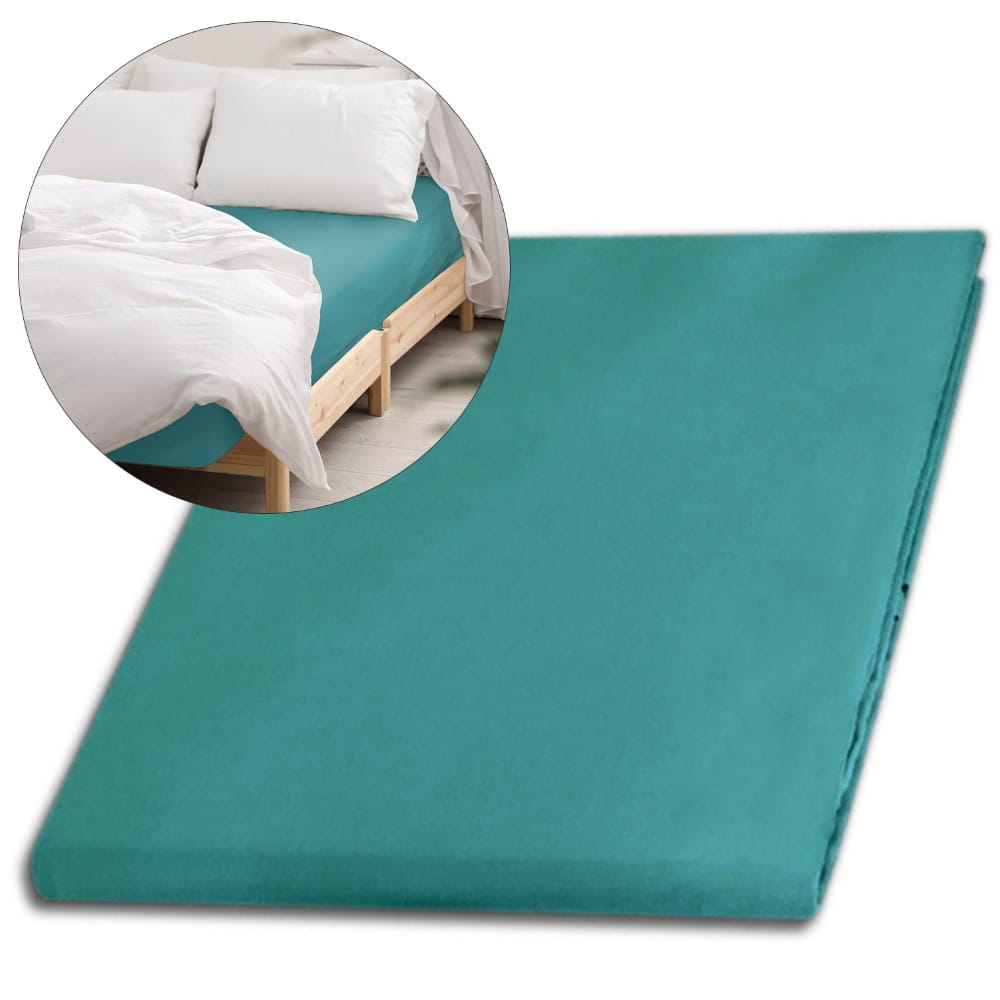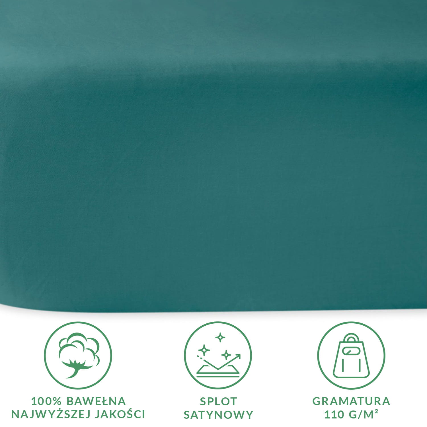 Klasyczne delikatne połyskujące prześcieradło satynowe 200x220 cm bez gumki w kolorze ciemnego turkusu