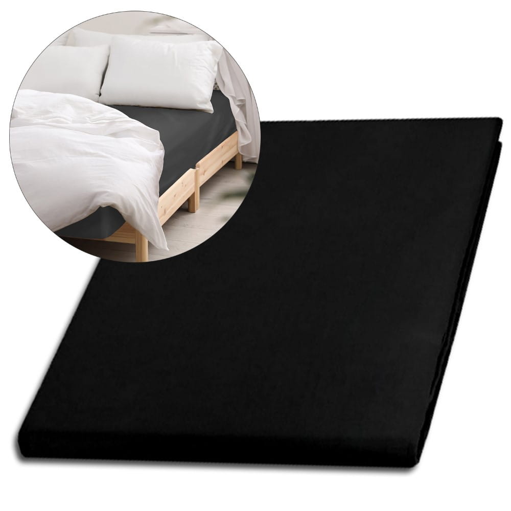 Połyskujące gładkie delikatne czarne prześcieradło satynowe 200x220 cm bez gumki