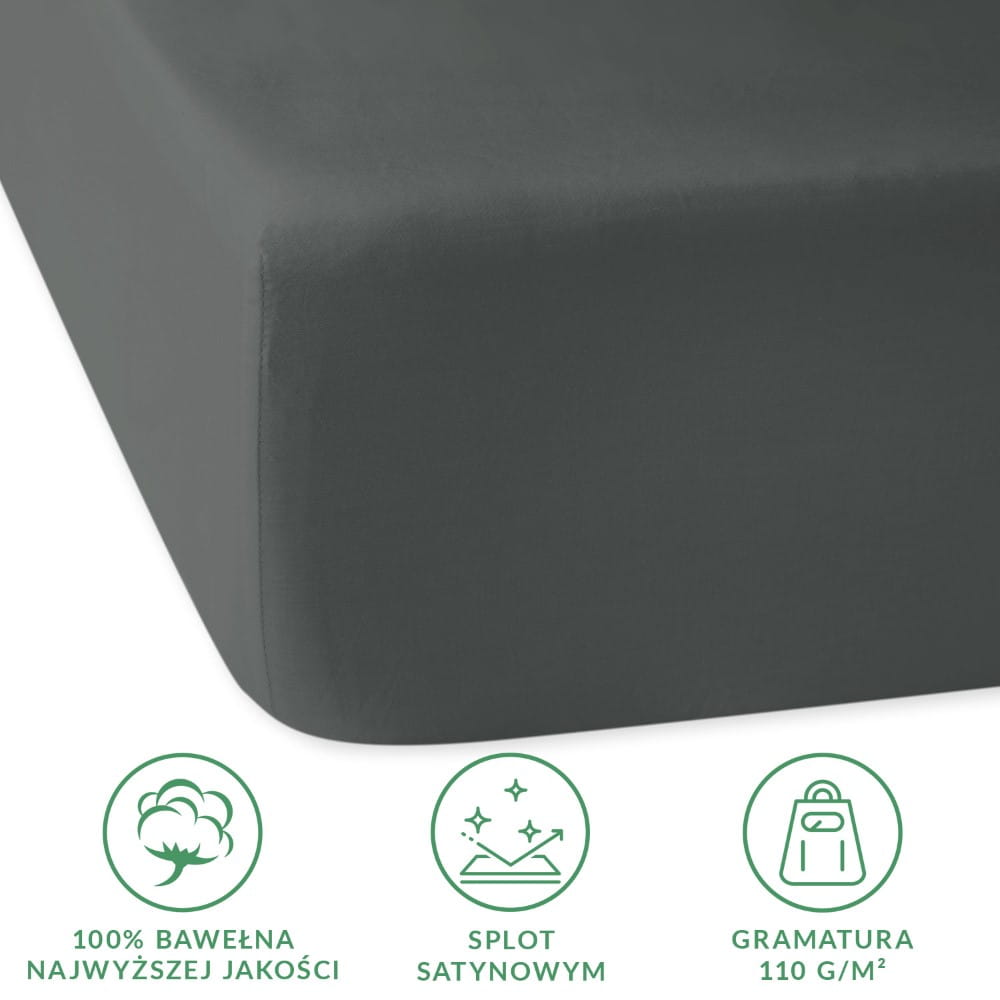Prześcieradło satynowe z gumką 180x200 kolor szary