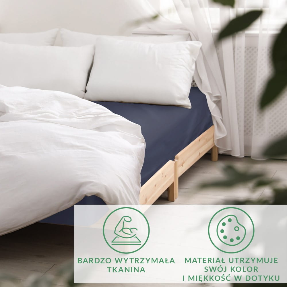 Dzięki satynowemu splotowi tkanina jest również bardzo wytrzymała, co zapewni wygodne i długotrwałe użytkowanie, bez obaw, że prześcieradło zniszczy się po kilku praniach. Materiał utrzymuje swój kolor oraz miękki efekt dotyku. Nie kurczy się, nie rozciąga i nie odbarwia, dzięki czemu możesz cieszyć się spokojnym i delikatnym snem.