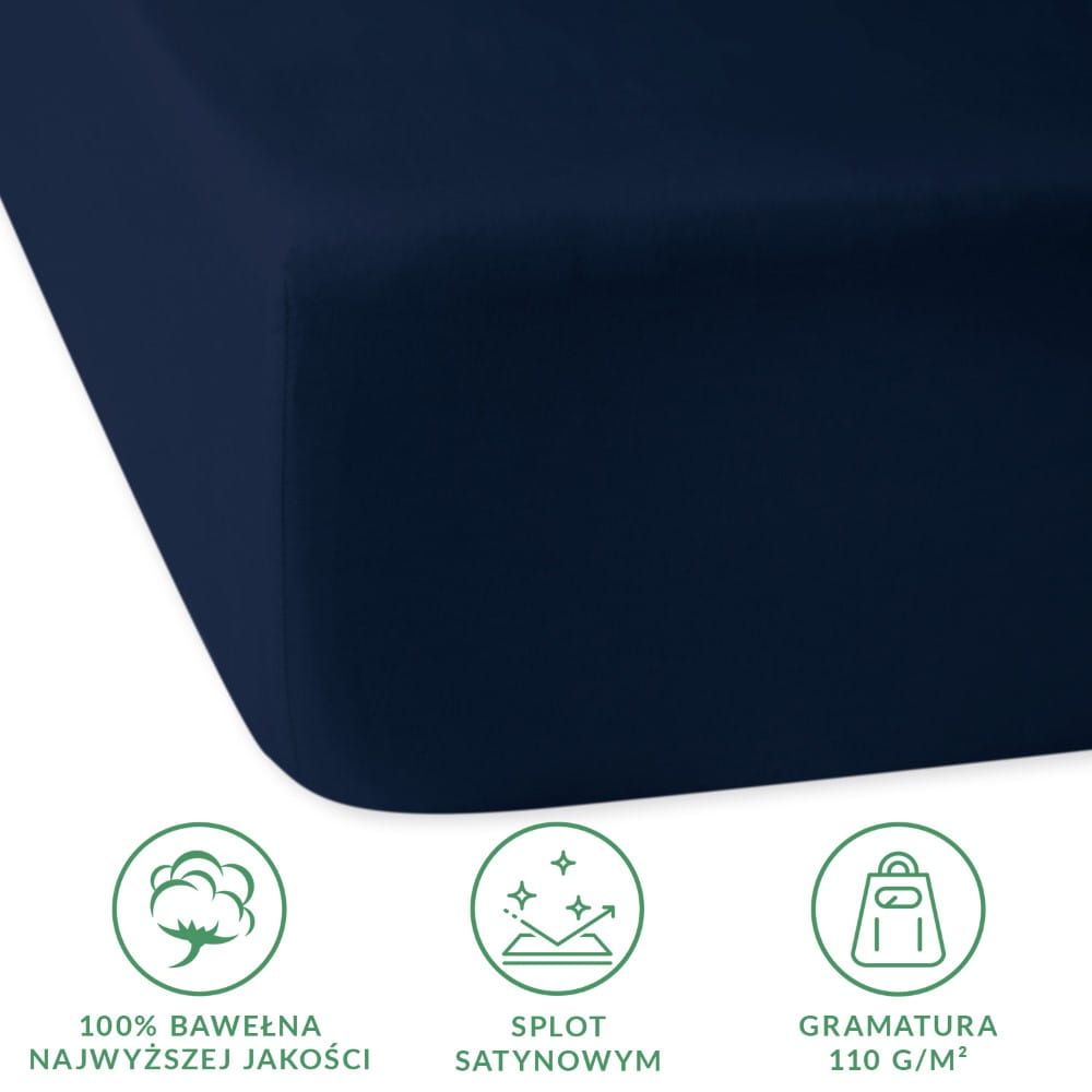 Prześcieradło satynowe z gumką 90x200 kolor ciemny granat