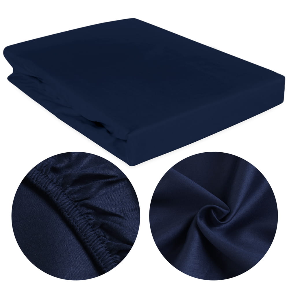 Prześcieradło satynowe z gumką 200x220 kolor ciemny granat