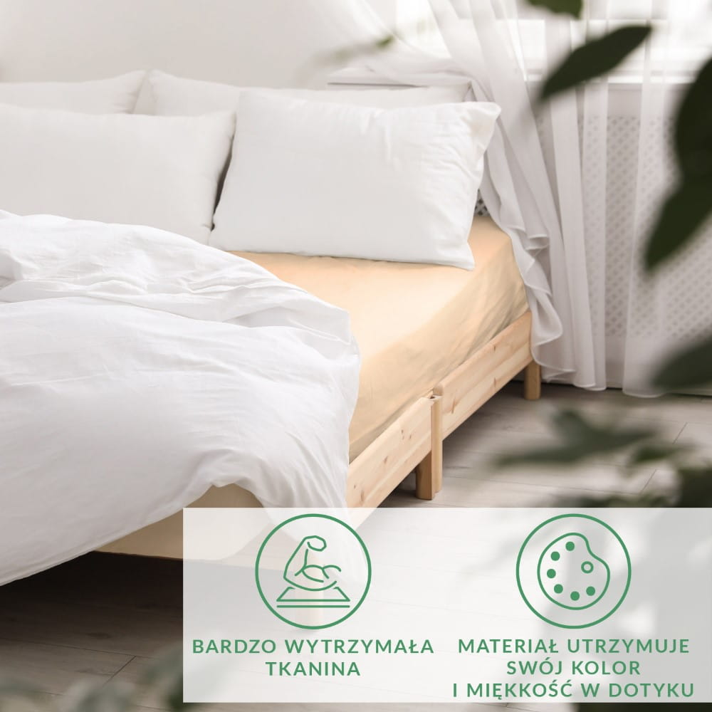 Dzięki satynowemu splotowi tkanina jest również bardzo wytrzymała, co zapewni wygodne i długotrwałe użytkowanie, bez obaw, że prześcieradło zniszczy się po kilku praniach. Materiał utrzymuje swój kolor oraz miękki efekt dotyku. Nie kurczy się, nie rozciąga i nie odbarwia, dzięki czemu możesz cieszyć się spokojnym i delikatnym snem.