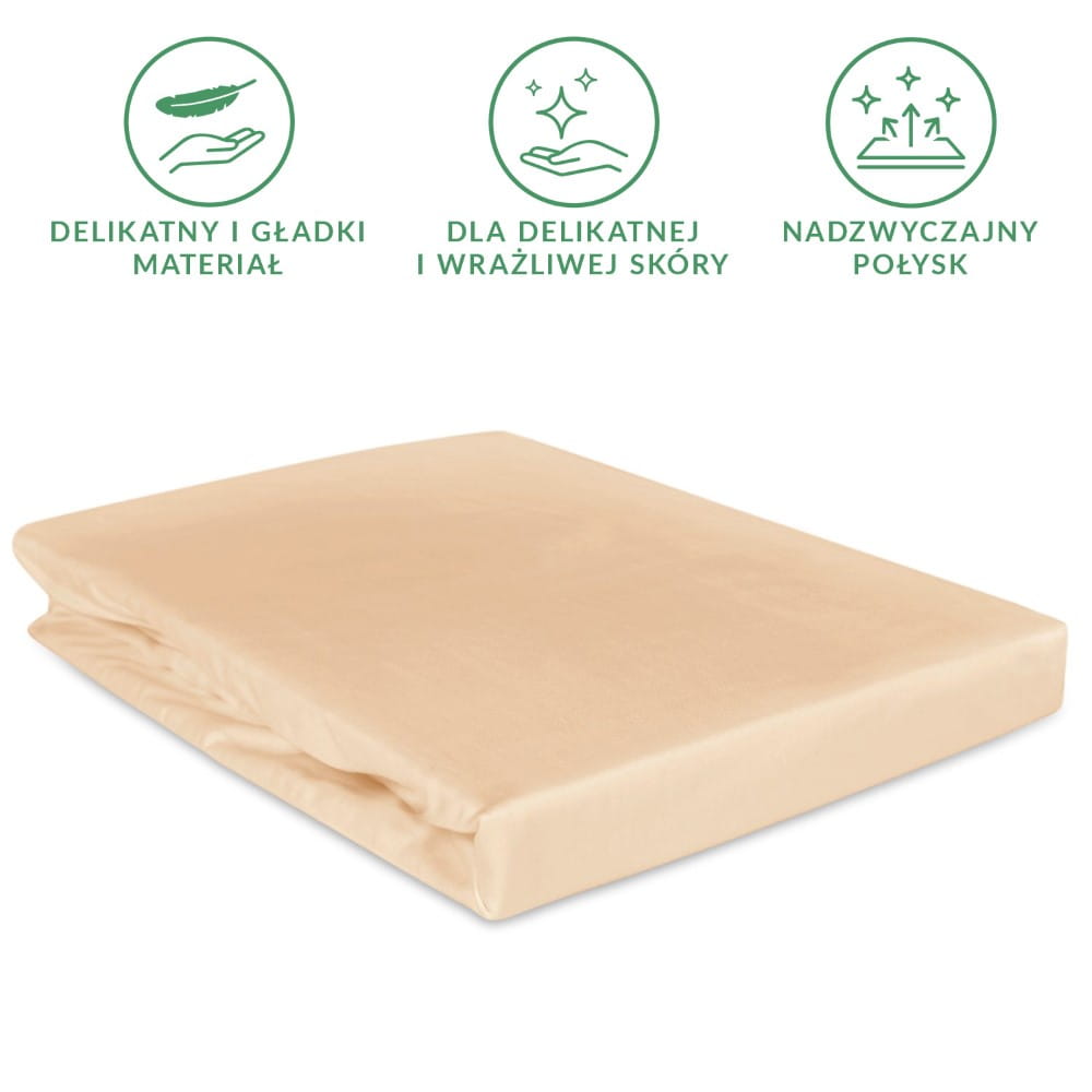 Gładkie połyskujące prześcieradło satynowe 200x220 cm z gumką w kolorze jasnego beżu