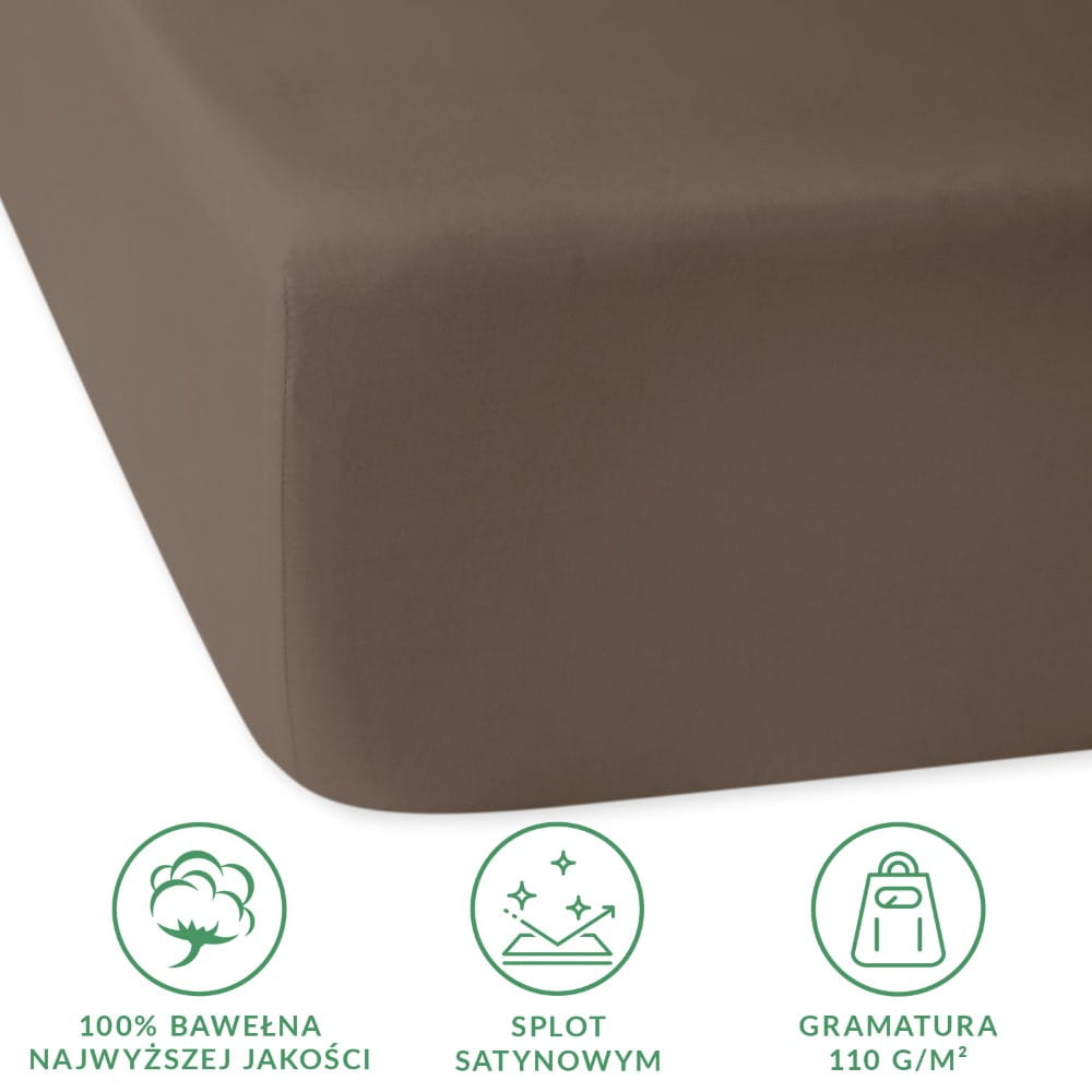 Prześcieradło satynowe z gumką 180x200 kolor Sepia