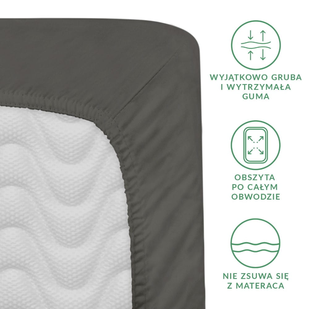 Do prześcieradła dookoła wszyta została bardzo wytrzymała i elastyczna gumka, która gwarantuje, że nie zsuwa się podczas spania z materaca oraz idealnie do niego przylega. Nie trzeba prasować, dzięki czemu oszczędzisz swój czas i w kilkanaście sekund nałożysz prześcieradło na materac. Pasuje do materaca 200x220 cm do wysokości do 20 cm.