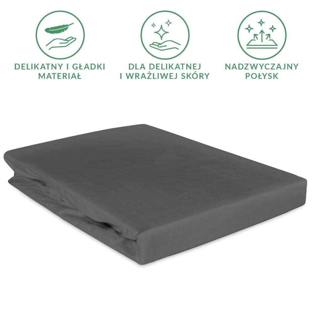 Prześcieradło satynowe z gumką 160x200 kolor szary