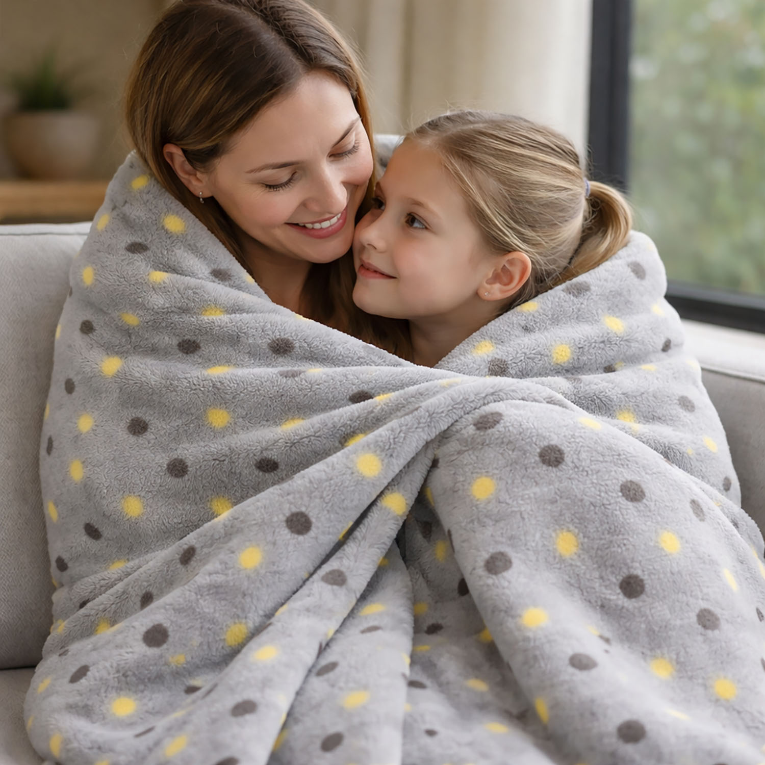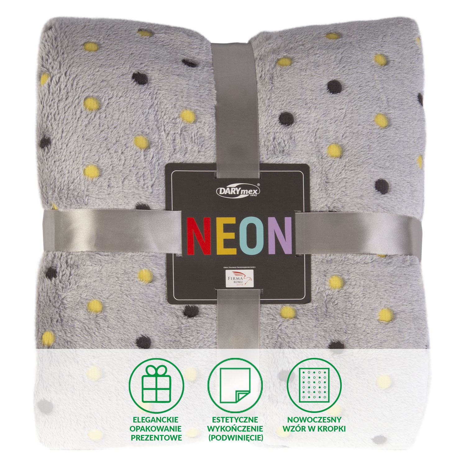 Miękki i puszysty koc z serii Neon Dots jasno szary - idealny na prezent, dekoracyjny, przytulny i elegancko zapakowany, 150x200 cm