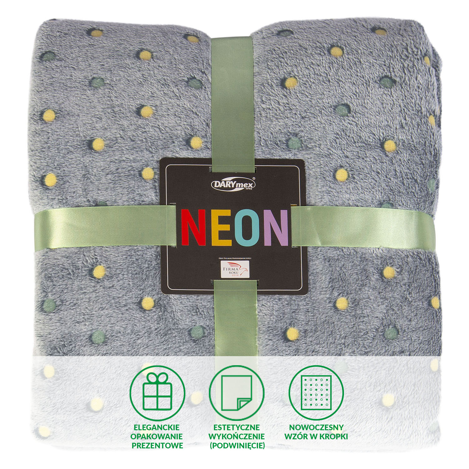 Miękki i puszysty koc z serii Neon Dots malachitowy - idealny na prezent, dekoracyjny, przytulny i elegancko zapakowany, 150x200 cm