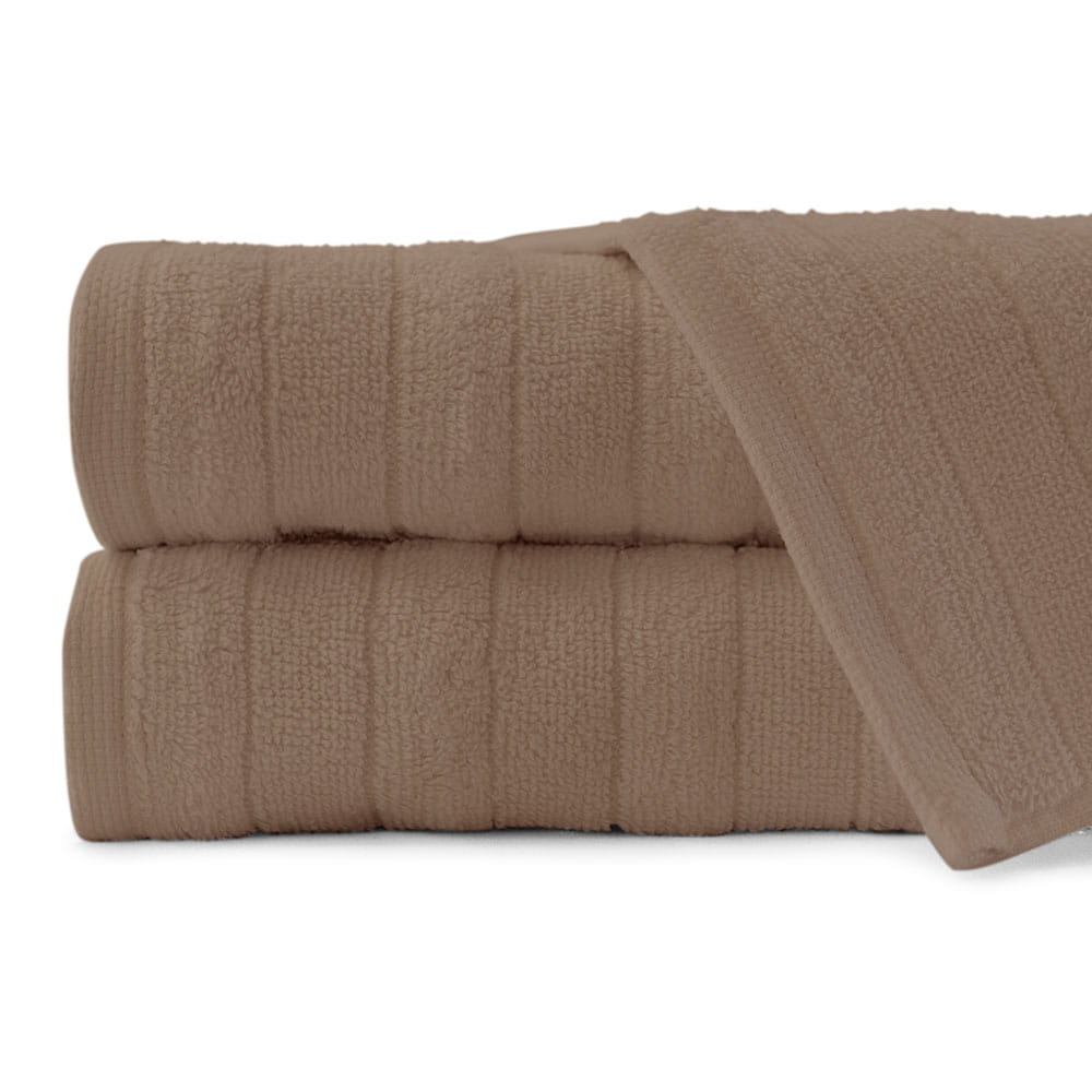 Elegancki bardzo miękki wytrzymały brązowy ręcznik bawełniany 50x90 cm w szerokie ozdobne pasy