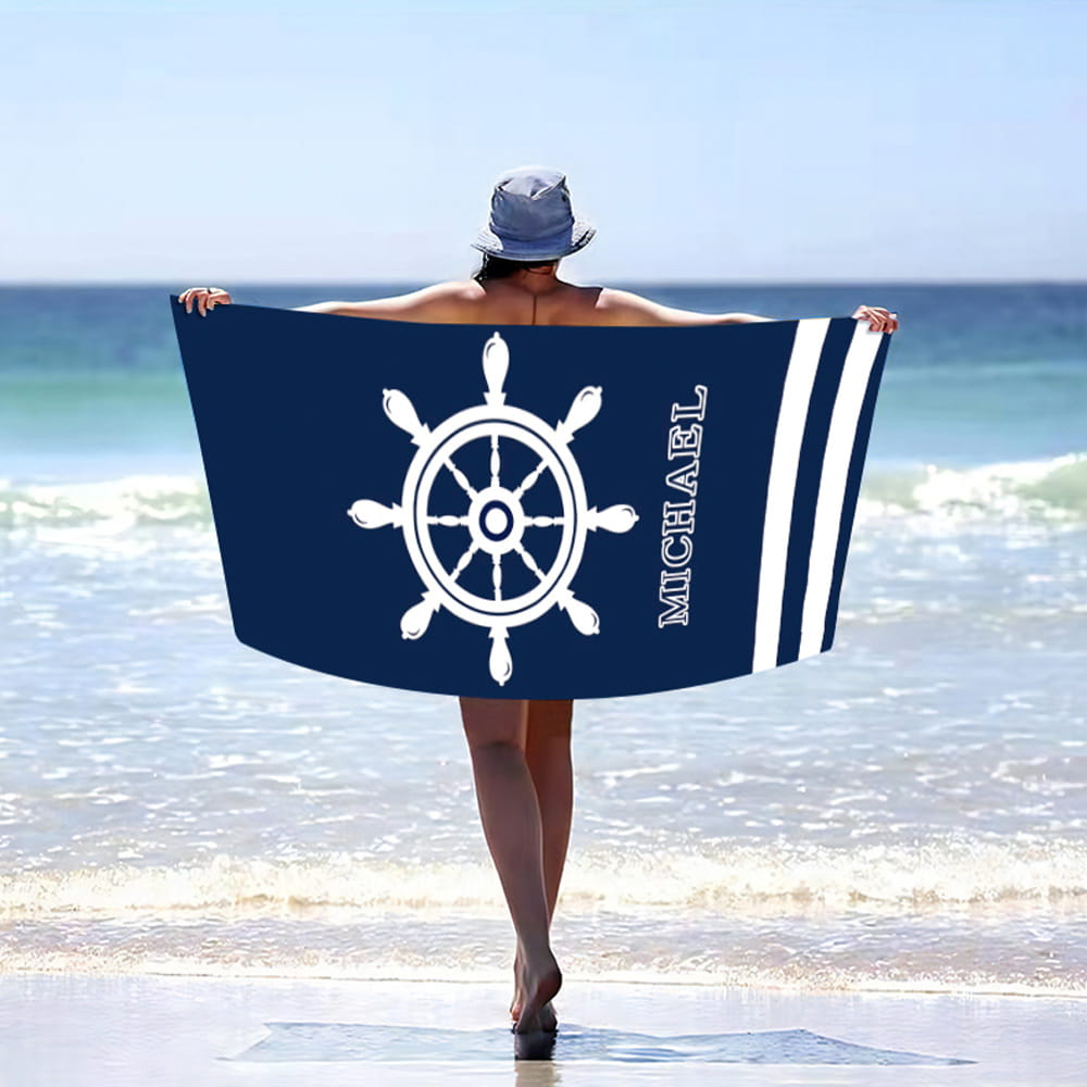 Bardzo duży, szybkoschnący, plażowy ręcznik z mikrofibry, ster na plaży w rozmiarze 100x180 cm