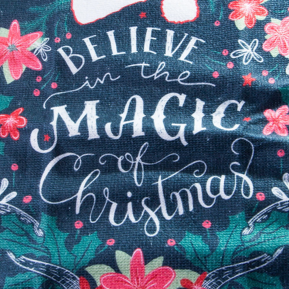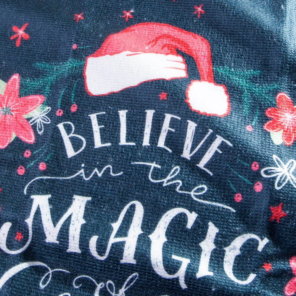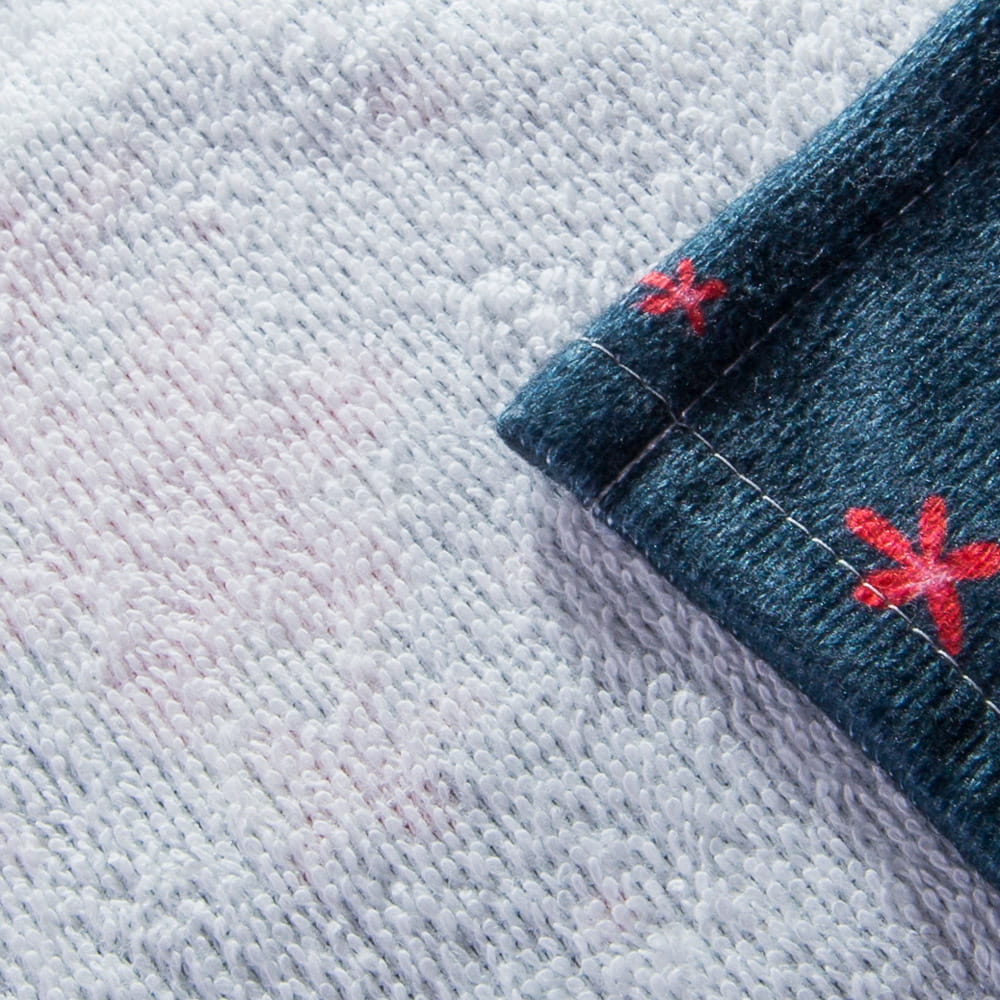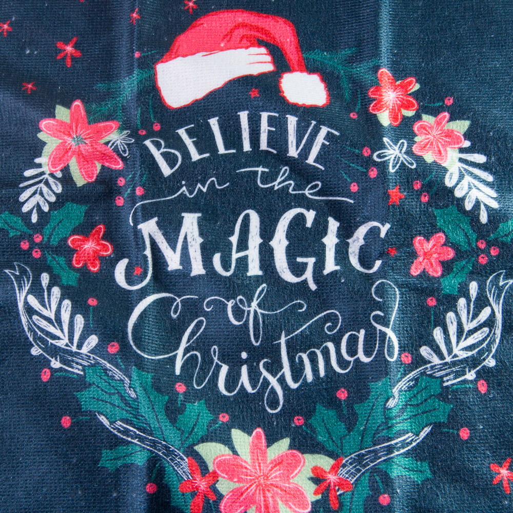 Granatowe ściereczki posiadają świąteczny wzór, jedna jest w mikołaje, a druga w świąteczny wieniec. Zostały wykończone podwinięciem. Jest to połączenie znakomitego designu z wysoką jakością produktu.